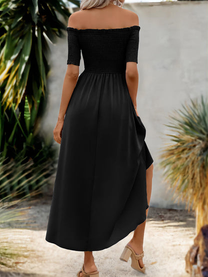 Schwarzes Off-Shoulder Wickelkleid